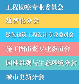 協(xié)會簡介 協(xié)會領導 組織結構 協(xié)會章程 協(xié)會會員 加入?yún)f(xié)會 會員變更 工程勘察設計專業(yè)委員會 BIM專業(yè)委員會 綠色建筑工程設計專業(yè)委員會 施工圖審查專業(yè)委員會 園林景觀與生態(tài)環(huán)境分會城市更新分會